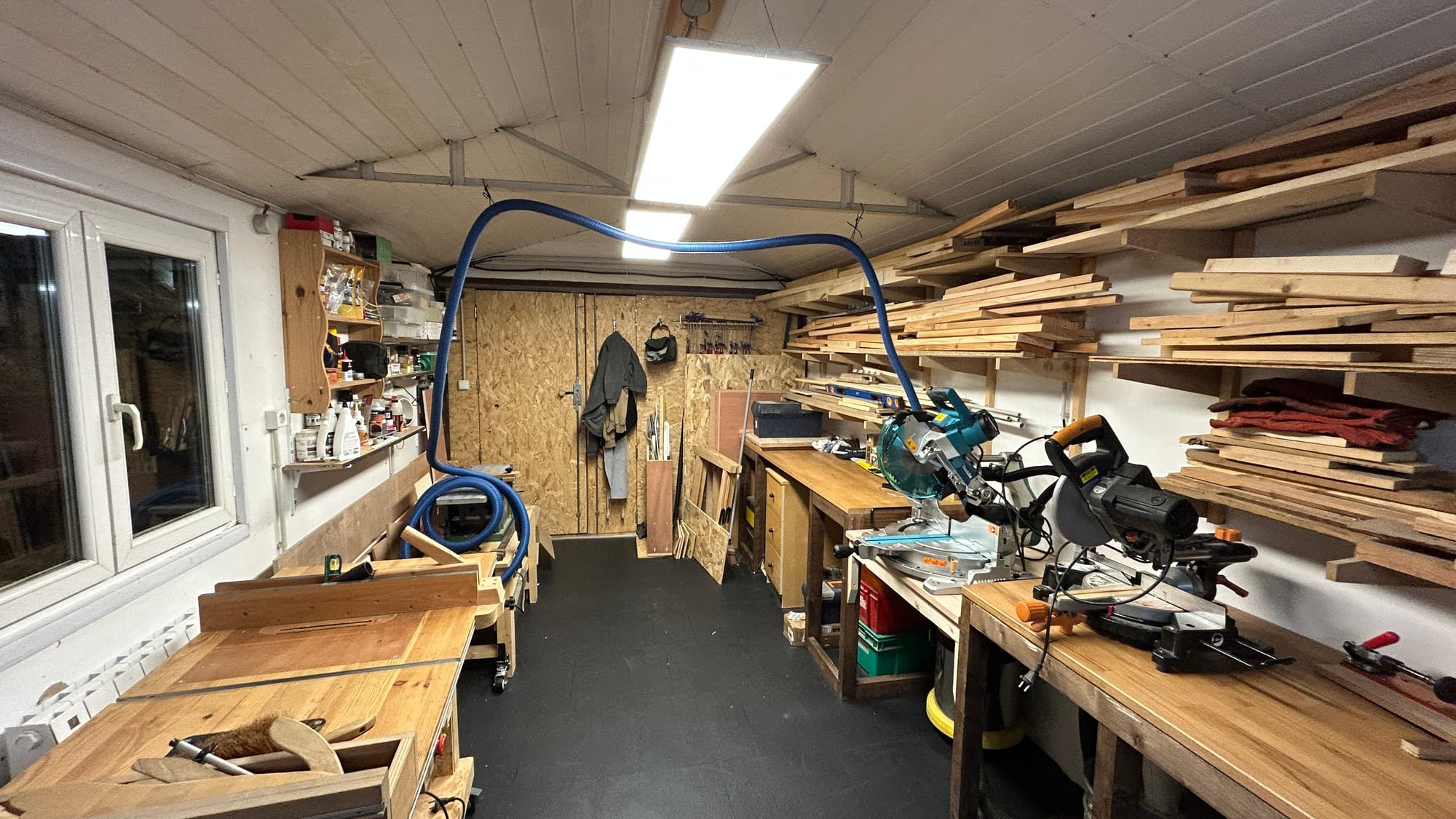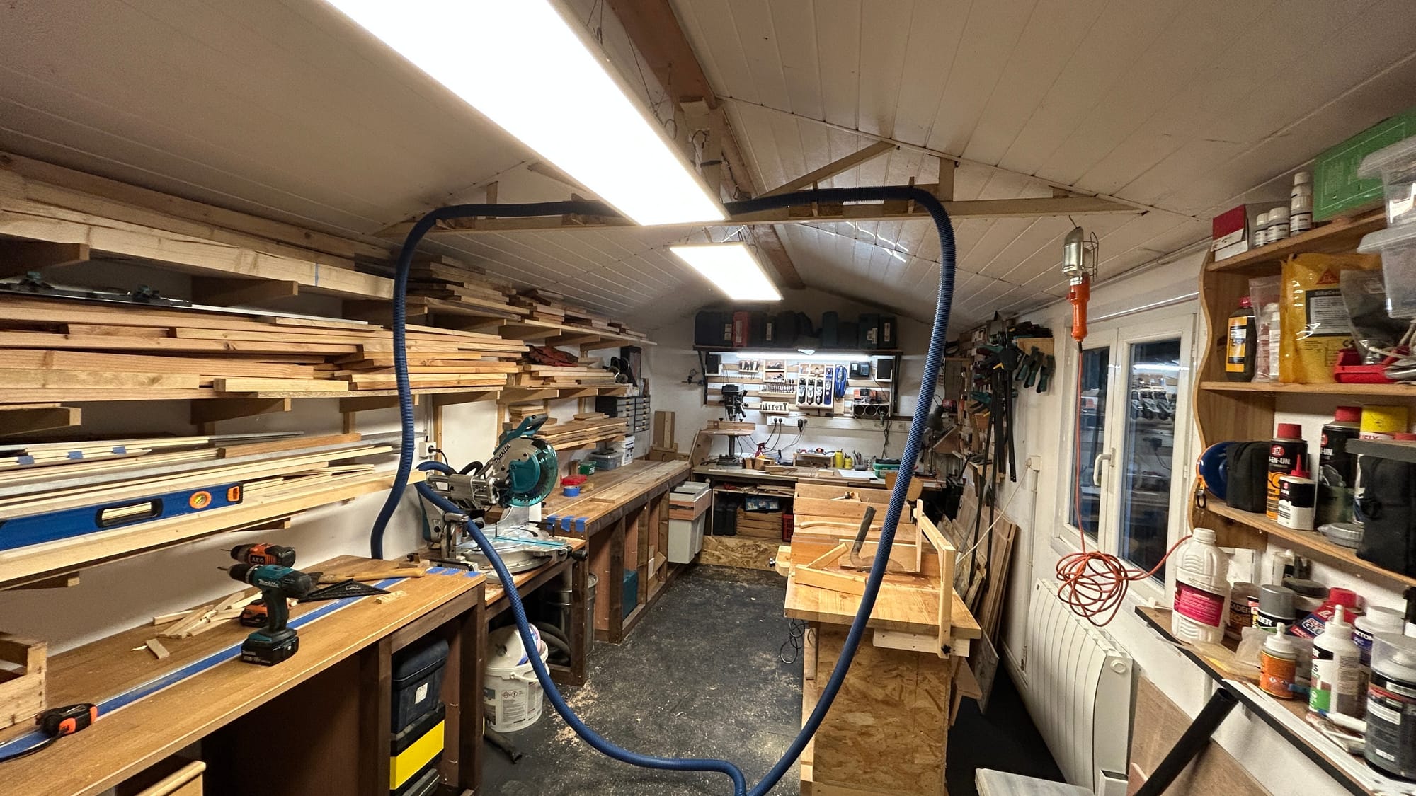Avec le nouveau sol de l'atelier, on voit mieux la poussière que la scie génère, alors je me suis décidé à essayer, on verra à l'usage.