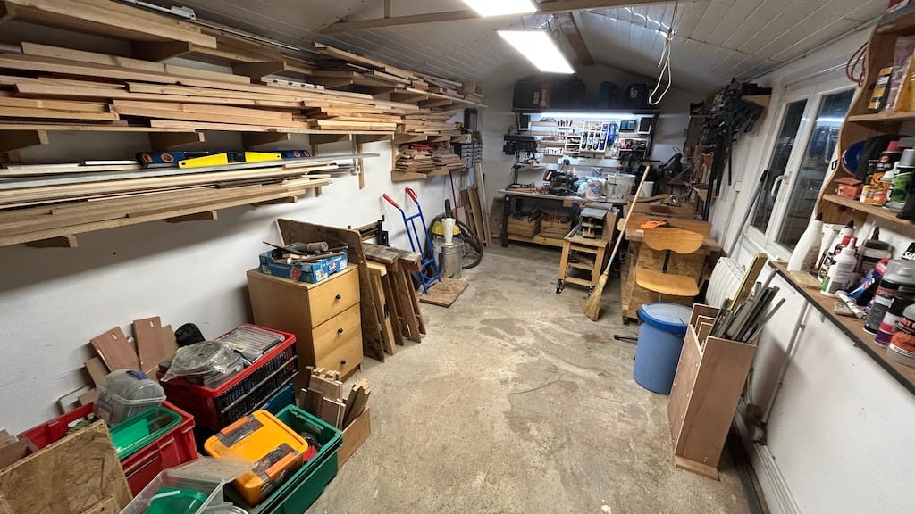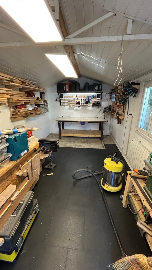Je n'ai malheureusement pas la possibilité de vider complètement l'atelier, la météo actuelle ne me permet pas de tout laisser à l'extérieur. J'ai été obligé de déplacer à plusieurs reprises les meubles.