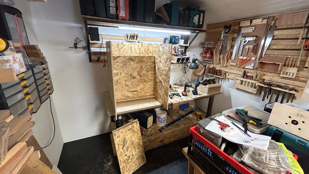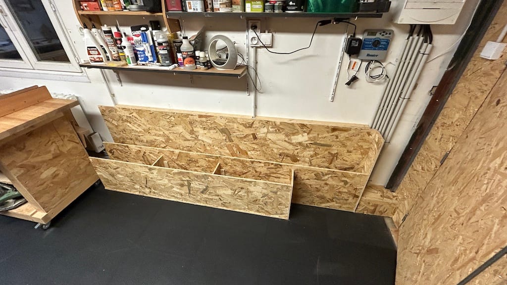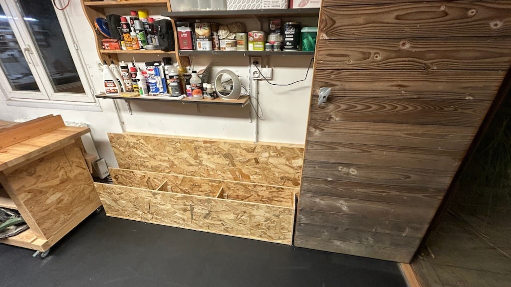 Le premier rangements va occuper le coin entre l'établi mécanique, et l'établi où il y aura le collecteur de copeaux/poubelles.