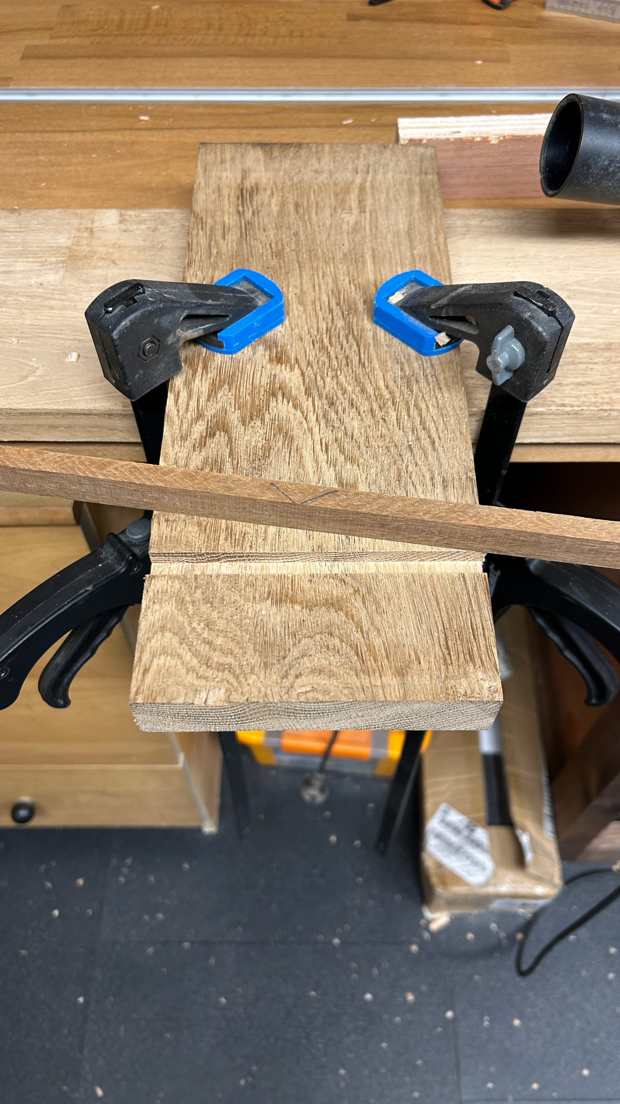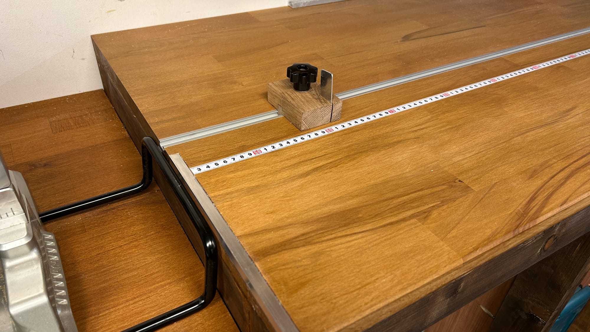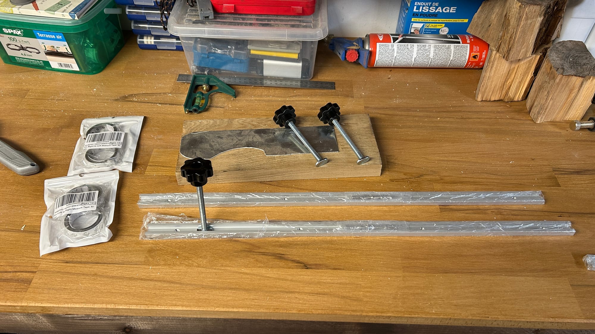 J'ai choisi un design des butées qui me permette de les laisser en place sans les dérégler, mais de pouvoir remettre une pièce de bois plus longue (par exemple pour couper un premier chant afin de partir d'une coupe propre avant de réaliser la pièce finale).